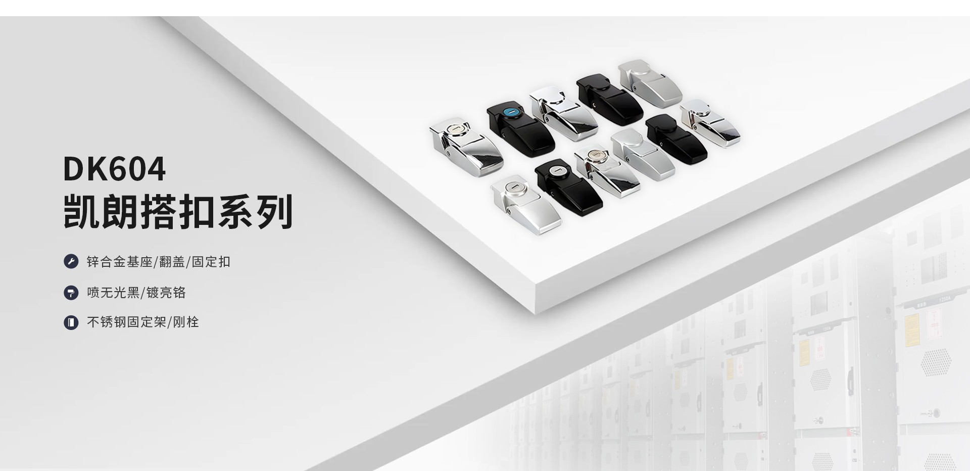 专业从事 : 配电柜门锁、高低压柜门锁、大型机械用锁、工业合页铰链、各种柜体配件、地面插座等。